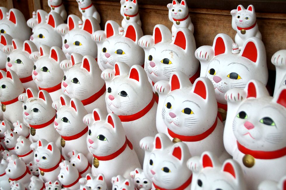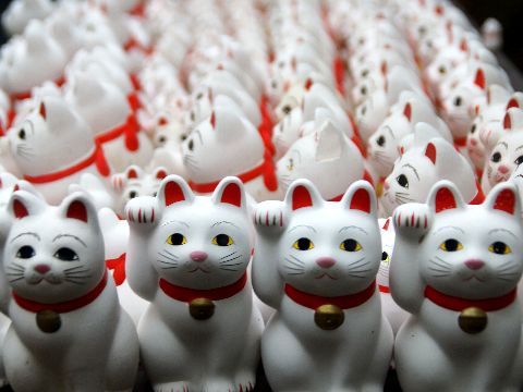 観光の目玉?招き猫多くのインバウンド観光客の姿を見掛けたが、どこでも五月蠅い某C国の観光客はいないようで 静かに見学できた。最近、猫に落書きがあるようだが、これも迷惑外国人の仕業? |