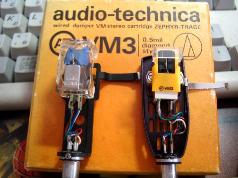 古いカートリッジが3個出てきたフィルムスキャナ探索で出てきた、レコードカートリッジ3個、一つはPIONEERのオリジナル、 2つ目は箱が残るAudio-techinicaのAT-VM3、3つ目はコネクタが独自なDENONのもの。どうやら DENONのストレートアーム専用のものらしい、ピン数が多くプラ製。 |