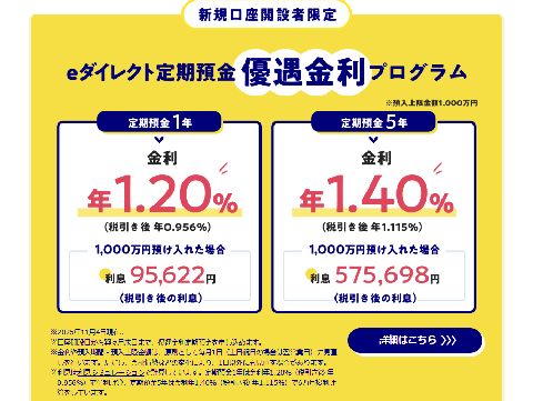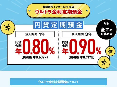 銀行金利が上がる傾向?今利用している静岡銀行の定期金利は0.6%、来年3月には満期になるので預け替えよう。 金利で預金流出がだいぶあったのか、また定期金利を上げてきた。 もうちょっとマイナーな銀行なら初回限りで1.2%とか1.4%というのもある。 |