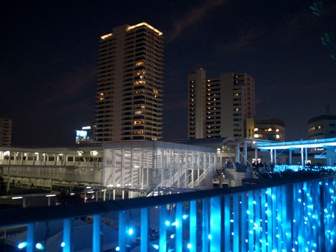 帰路、テラスモールへイルミネーションを見るべくテラスモールの2階テラスへ、5時からの第一回を鑑賞、撮影。 辻堂駅南口の高層マンションは入居が始まったようで結構あかりが点いているのが見える。 |