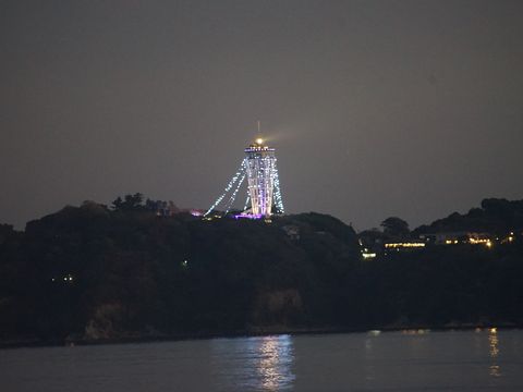 江の島のシーキャンドル午後5時からは「湘南の宝石」でイルミネーションが点いてきれいな姿に。 |