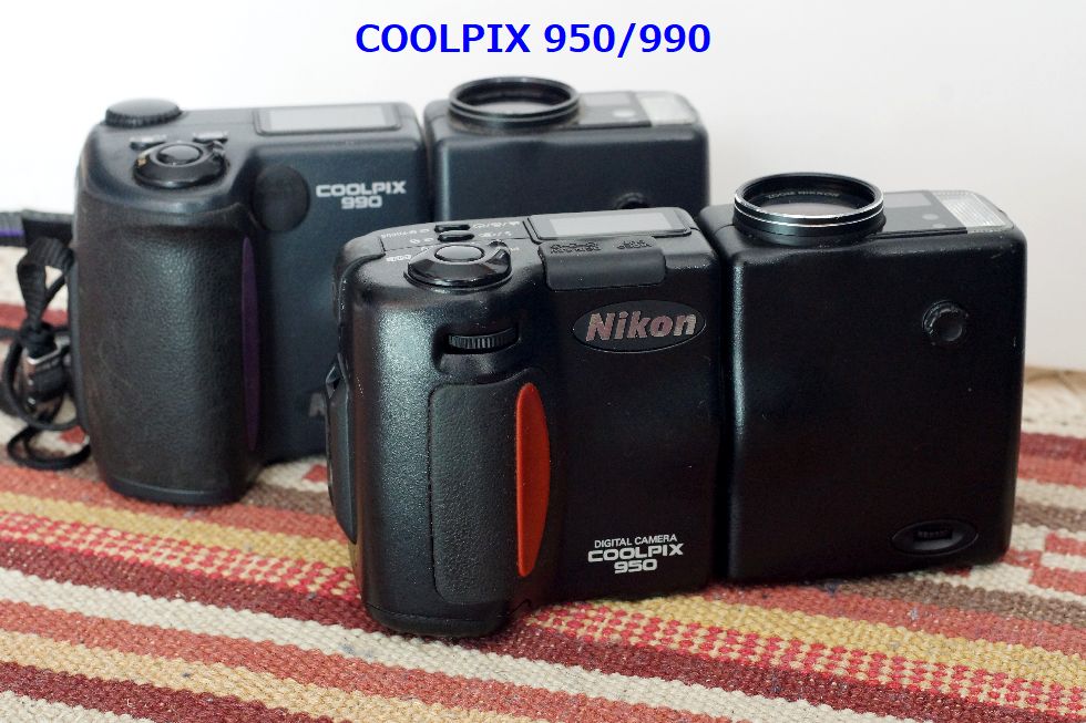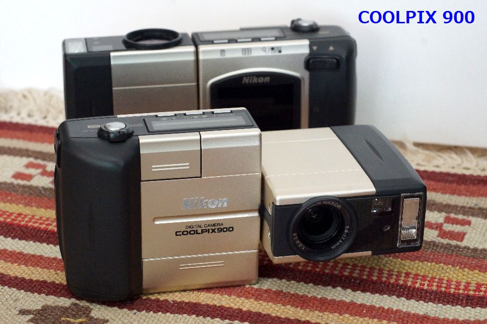 ニコン、最初のスイベル機(高級機種ラインだった)E900は110万画素だったが発売時点では高級機の位置づけ、記録メディアはCF、たしか8MBのものが付属。 マイナーチェンジで130万画素の910が出たが外観は変わらず色がパープル調に変わった。 |