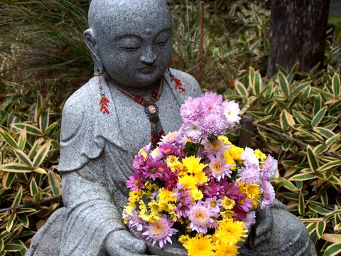 リンドウなど季節の花源氏にゆかりのリンドウ(紋所は笹りんどう)の花も咲いている。 |