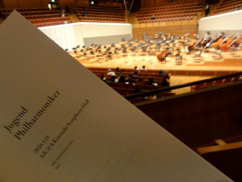 ユーゲント・フィルハーモニカ―@ミューザ川崎カーテンコール時にスマホに限り撮影可とのアナウンスあり、デジカメは不可だそう、何故? 演目は、1)ブラームス:交響曲第3番、2)ブラームス:交響曲第4番、アンコール無し。 プレコンサートあり、弦楽合奏の曲だが、曲名不明、どこにも説明なし。 2026年2月11日(水・祝)