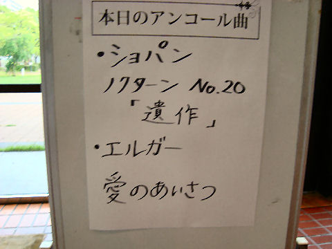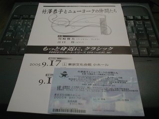 ![]() 2005年8月7日(日) この会場は初めてだったが、中庭に竹林があったりと良い感じ。 1500名規模で2/3位の入り。クラシックからラグタイム、ポピュラーまで幅広い選曲。終了後、サイン会があったが、もう買うCD無しで見送り。秋には新しいCDが出る予定とのこと。前から2列目のい左手で指の動きまで良く見えたが、チェロとの違いは大きい。 ステージ上では薄緑のロングドレスで大きく見えるが、サイン会でみると小柄な女性。伴奏者とともにジーンズというカジュアルな格好でサイン会をやっていた。 昨日は秦野だったが、入りはどうだったのかな? ミューザ川崎で小川典子のピアノ・コンサート