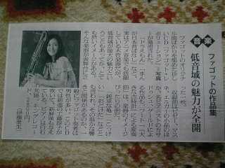 ![]() 2005年4月2日(土) 先日の朝日新聞に掲載のファゴット曲のむのCDで紹介のあった工藤淳子さんのミニライブをWEBで探したら、3月5日のヤマハ銀座は惜しくも終了、でも4月2日渋谷タワーレコードが見つかったので出かけた。 お約束通り終了後にサイン会があるとの事でCDを購入し、サインを貰ってきた。まだ有名でないので数人規模だったが、プロすれしない純なイメージ、演奏終了後すぐで手が震えてうまくサインできない、と言いながらサインしてくれた。 確かにファゴットのCDなんて聴いたこともないし、ソロのコンサートなんてのも聞いたことがない。 かつしかシンフォニーホールへ長谷川陽子のチェロを聴きに