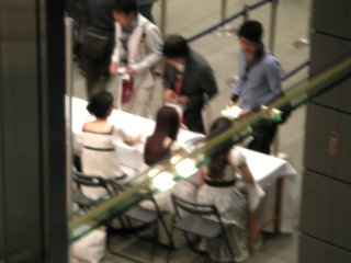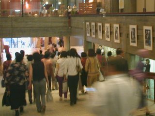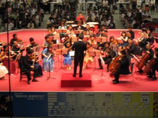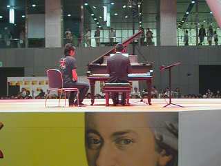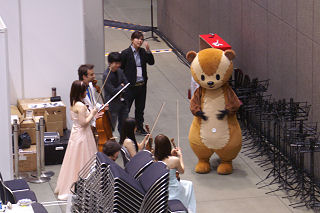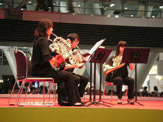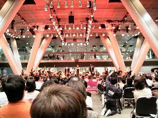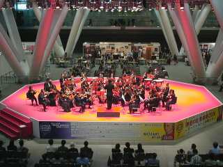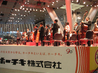 ![]() 2005年5月1日 (月) 最終日の目玉は、諏訪内のバイオリン協奏曲ニ長調。S席とはいえ2階席なので遠くて顔まではハッキリと見えず。でも、最終日の目玉でホールAはほぼ満員、終了後もアンコールで5回も出てきた、共演のポーランドのオケのメンバーも呆れているというか、ビックリというか。 長身ですらりとし、美形のバイオリニストのトップという感じ。 画像は地下で行われた無料コンサートでの丸の内交響楽団(アマ)の様子、入場券を持っている人が無料で参加できるもの、フラッシュは駄目だが撮影は可能だった。 「熱狂の日」2日目、庄司紗矢香と田園