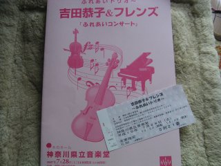 ![]() 2007年7月28日(土) Yahooで入手、前から5列目のセンターという良い座席だった。 吉田恭子のバイオリンと白石光隆のピアノ、渡部玄一のチェロというトリオ。会場は神奈川県立音楽堂で木の古めのホール、音は良いが席は狭い。 地元の作業所の作品販売やバイオリンの体験コーナなどがあり。三井グループ広報委員会のサポートで開催し今回で206回目だとか。あの王子製紙も三井グループだとか。 「熱狂の日」音楽祭へ(2日目)