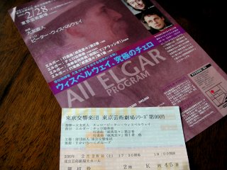 ![]() 久しぶりのコンサート:池袋・東京芸術劇場 5時半にチケットを受け取り会場内へ、ここは始めて来た会場だがバブル絶頂期の建物のよう。でも「芸術劇場」とは池袋西口に似つかわしくない?命名かも。 エルガーの作品ばかり4曲、アンコールでバッハの無伴奏チェロと愛の挨拶があり。会場が大きいので2階席からは指揮者や演奏者の表情はまったく見えず。でもフルオーケストラでのエルガーの「威風堂々」は迫力満点でなかなかのものだった。 2009年1月8日(木)