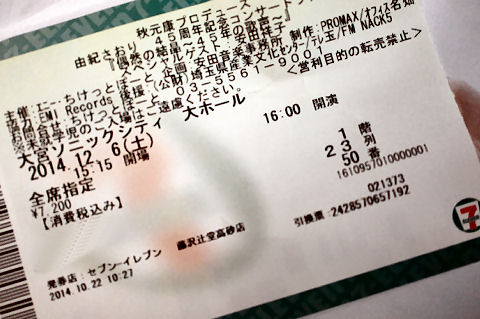 ![]() 大宮ソニックシティ・由紀さおり45周年コンサート 2014年11月1日(土)