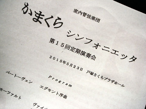 ![]() 戸塚さくらホールへ 戸塚駅前の区役所のビルに昨年出来た小ホールでの公演を聞きにいった。駅から雨に濡れないで行けるし自主公演は比較的安価な料金でクラシックのコンサートが楽しめる、交通費もあまり掛からないので助かる。 地元のアマ室内楽団だが盛況、すぐ後ろのオバサンが演奏中にぼそぼそ呟いて五月蠅かったのはガッカリ。6月の新倉瞳のブランチコンサート(チェロ)の指定席チケットも買って来た。 2015年5月17日(日)