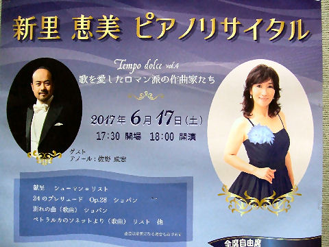 ![]() 新里恵美 ピアノリサイタル 2017年3月12日(日)