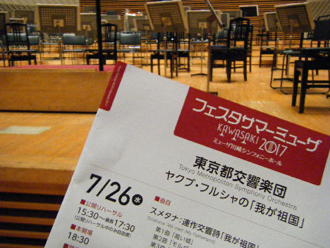 ![]() ミューザでスメタナ「わが祖国」を最前列で聞く ヤフオクで入手の最前列チケット「25番」、22−23が指揮者の真後ろという位置、低いステージまで2m弱、指揮者まで3−4mか。 やはり近すぎは音が偏り(目の前はビオラパート)、指揮者の足踏み音まで聴こえて良い場所とは言えない。 東京都交響楽団、指揮はヤクブ・フルシヤ。 2017年6月24日(土)