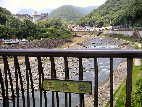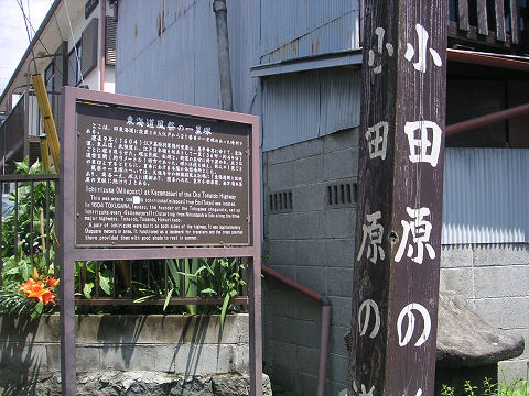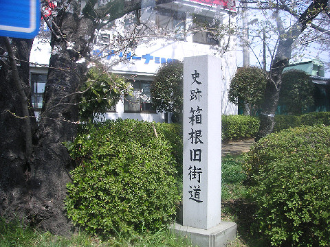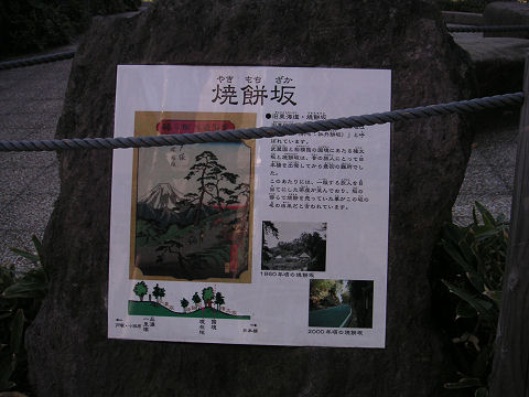 川と小田急線に沿って湯本の温泉街へ、駅の手前で三枚橋を渡って旧道を箱根へ。 箱根駅伝のルートは駅を越えてまっすぐ行く道路を行くが、旧街道は狭い道を登る。登りが続き畑宿でおしまいに、これから先の街道は急な上り坂が続く。 |