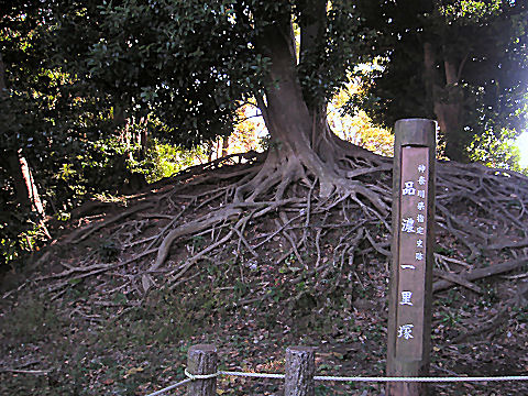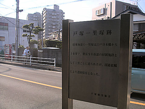 品濃の一里塚など多くの一里塚標識あり、東戸塚の山寄りの尾根道?を進む旧・東海道。戸塚まで3時間、天王町手前で道を間違え戻るのに苦労、一本入る道を間違えたのが原因。 |