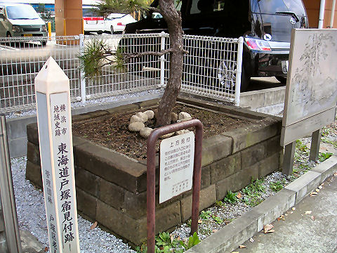 歩いても汗をかかなくなったので午後から戸塚駅へ、地図無しだが判り易いコース。戸塚から「大坂」という坂を上り、尾根上を道が通っているので下方は谷が見渡せる。下は「原宿一里塚」跡、今は渋滞の名所で立体化工事中。 |