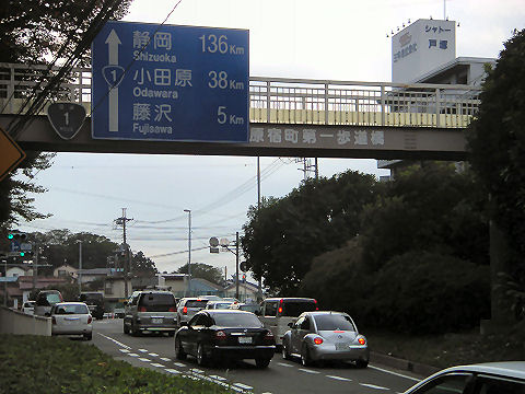 一号線・藤沢バイパスから別れて暫くで藤沢市へ、松並木は松くい虫でほぼ全滅との看板あり。遊行寺坂を下ると時宗総本山の寺があるが閑散としている。藤沢橋で右へ曲がって茅ヶ崎方面へ、ここを左折して藤沢駅方面へ、途中で強度計算のごまかしで取り壊されて3階だけ残っているGS藤沢マンションあり。 |