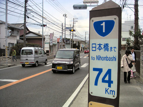 一号線と平行して走る県道が主体で比較的歩きやすいコースだが平坦で残っているものも少ない。 |
