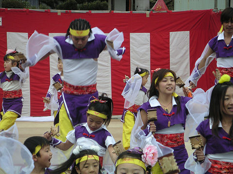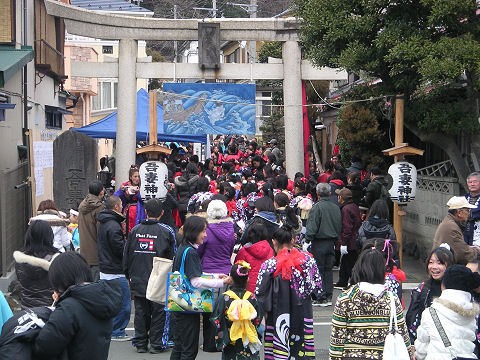 途中の吾妻神社で踊りやお祭りが行われていて人出で賑わっていた。 |