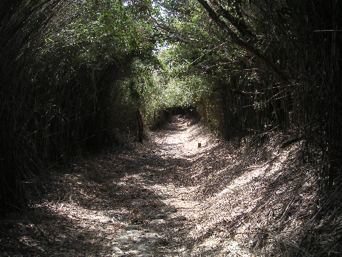 丸子宿を出て、しばらくで「宇津の谷」峠越えに。明治のトンネルは遊歩道に、大正のトンネルは旧道に、現在は4車線の新トンネル。峠越えは山の道で長くはないが息が切れる厳しいコース。 |