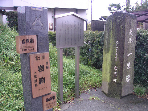 吉原駅(ここも富士市)から少し戻って踏切を渡って北へ、今の吉原・富士駅あたりは沼地で新しい埋め立てなので街道は大きく吉原本町へと迂回している。 |