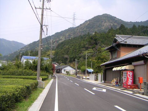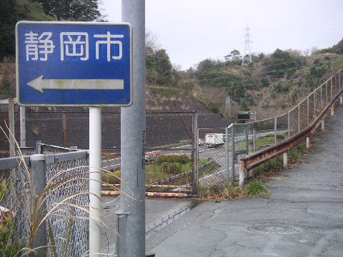 富士市内を抜け富士川の橋を渡って対岸の富士川町へ、ここは元は岩淵という地名、王子製紙の工場も岩淵工場。街道は川を越えると高い所を通り東名高速と絡みながら山の中を進む。 |