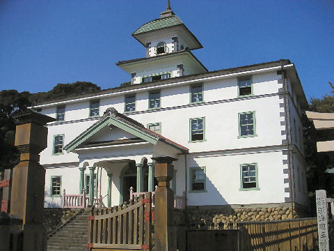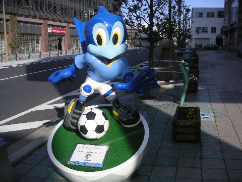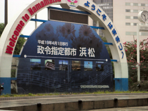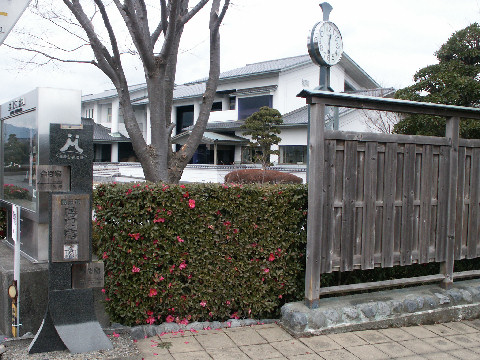 上は、有名な?見付学校。明治初期にこんな立派な作りの学校を作ったとは、地方?の明治人意気込みを感じる。磐田はジュビロの街、町中にこんな旗が立っている。 |