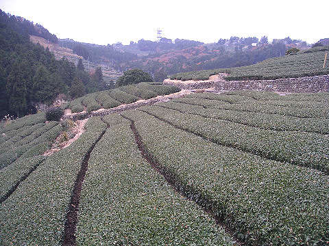 峠越えは大変と思い、伊勢坂下までバスで。関駅前まで空、乗ったのは3人だけ、2人は途中で降りて最後は一人。坂下は誰も見かけず静か、早速スタート。峠の上り口から急な上り坂に。途中誰にも遭遇せず、本当に皆歩いているのか? 他の人の記事であった通り、峠を上がると急に開けて茶畑。あとはだらだらの下りで野洲川沿いで下り。 |