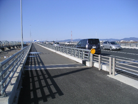 残り40kmほどのうちの半分。瀬田駅近く(一里山)を9時前にスタート、瀬田の唐橋、大津市の中心を通って逢坂山の峠へ。途中、京阪電車と何度も交差する。 |