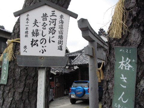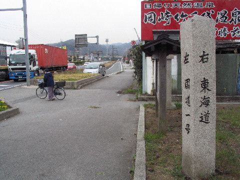 豊橋までJRで行き、名鉄で国府(こう)まで戻りスタート。松並木も残り平坦で歩きやすい区間だが、国道と重なる部分も多く、トラック街道で面白みは少ない。 |