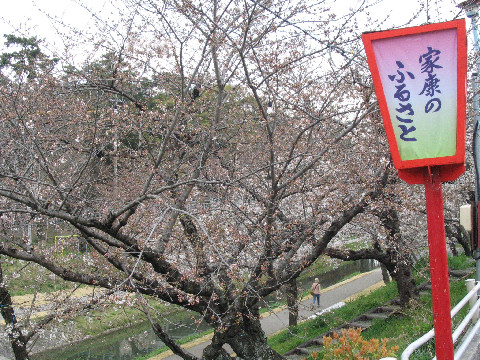 岡崎からバスで美合へ移動し、スタート。 話題の岡崎の27曲がり、本当に細かく折れ曲がり地図無しではとても歩けないコース、途中でそれて岡崎城のわきを通過、まだ桜は満開には遠い。太平の一里塚は初めて見るオリジナルに近いもの、これがずっと一里おきにあったとは。 |