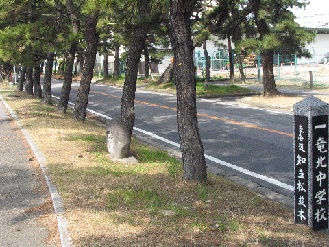 亀山市外を抜けるところから見た、亀山城の一部。 下は「野村の一里塚」、片側しか残っていないが随分木が大きいのには圧倒される。古い知り合いが亀山出身と思い出し、電話帳で調べたが本当にそうかは曖昧。まあ、良いか。 |