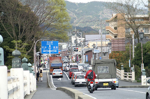 酒匂川の橋を越えて小田原の街へ、東海道は小田原城から離れた所を通っているので駅まで遠い。 |